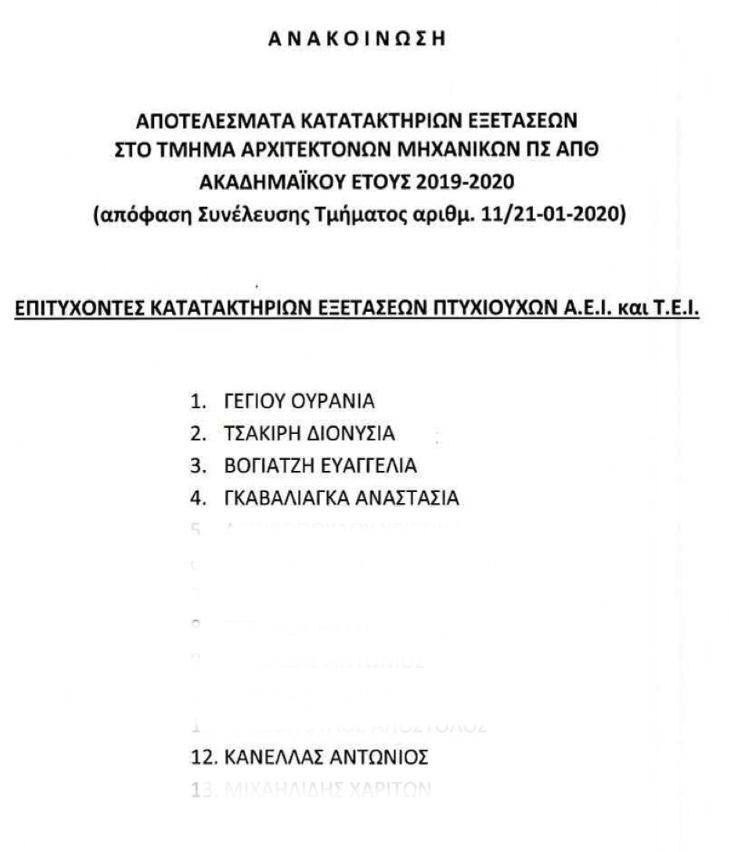 Συγχαρητήρια και φέτος στους μαθητές μας για την επιτυχή εισαγωγή τους στην Αρχιτεκτονική Θεσσαλονίκης μέσω κατατακτήριων εξετάσεων!